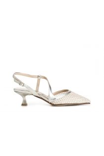 slingback court shoes asymmetrical mesh model with rhinestones at the front light gold