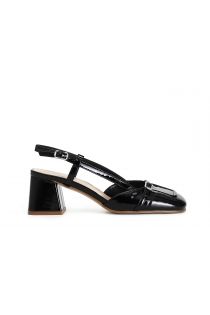slingback patent leather shoes with border and narrow strap black