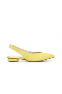 Suede slingback ballet flats with a tapered toe. Low heel covered with the same material as the upper