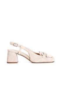Suede shoes embellished with a horsebit. rounded shoe shape. lace at the back. 45mm-high heel. a mix between a loafer and a court shoe. very comfortable perfect for everyday use.