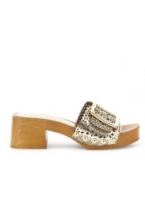 Slipper with perforated upper. 6 cm high chunky heel.