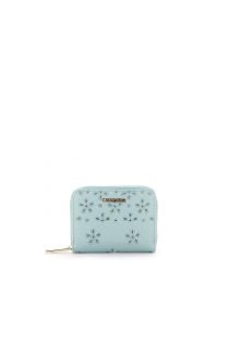 small round zip wallet with nappa effect and san gallo embroidery aquamarine