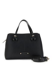 Elegant and versatile small tote bag in grained leather with smooth contrasting details. featuring handles with metal loops a riveted tag and a removable shoulder strap for a practical and refined style. dimensions: 28 cm (length) × 18 cm (height) × 13 cm (depth)