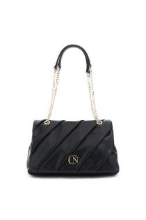 Faux leather shoulder bag with flap and pleating, sliding chain shoulder strap with padded shoulder straps. Metal café logo for an iconic and elegant touch.