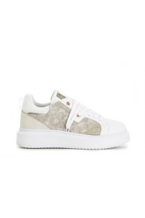 Sneakers in logoed fabric and leather box sole stitched on upper
