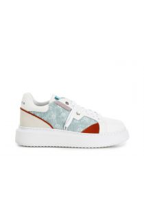 sneakers in logoed fabric and leather on box sole multi turquoise