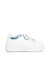 Sneakers enriched with an original turquoise-coloured patent appliqué. leather upper and insole. lace-up closure. box sole.