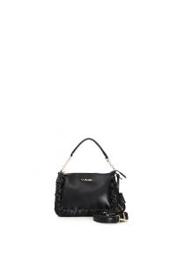 Small bag in soft material with zip fastening and threading along the sides to be carried by hand or with optional shoulder strap.