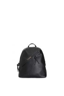 soft eco-leather backpack with front pocket and knotted zip puller black