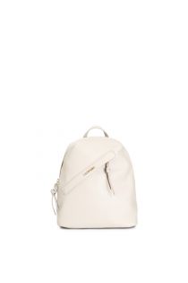 Soft backpack in coarse-grained eco-leather minimalist design with front zip pocket and knotted zip puller. perfect for a casual and modern look.