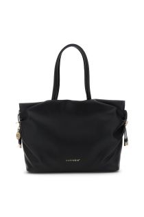 soft leather-effect shopping bag with grain and ruffled sides black