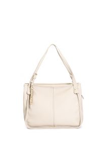 Soft shopping bag in coarse-grained material shoulder strap with metal lettering practical partition with internal zip for a casual and functional style.