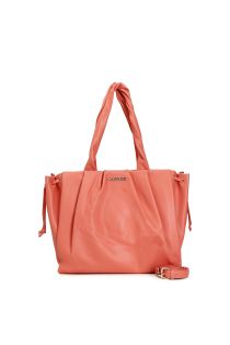 soft shopping bag with pleats and magnet fastening and side drawstrings orange