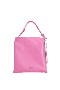 soft unlined bag with knotted handle and coloured pendant hot pink