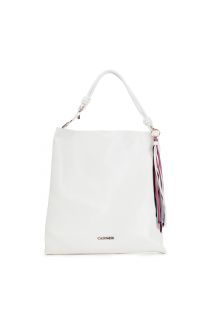 Soft unlined boho bag with an elongated shape knotted handle and cafènoir accessory on the fastening embellished with a pendant of coloured threads.
