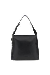 Grained faux leather shoulder bag with adjustable handle and large metal lettering. Large internal flat pocket and practical closure.