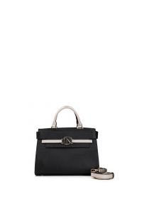 Stiff, two-colour bowling bag with a refined and elegant charm with fake flap and loop with CN hardware. Contrasting handle and shoulder strap.