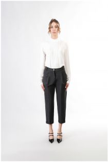 Straight leg trousers with open pleats and cuffs at the hem. comfortable garment with elasticated waist on the back and made of stretch fabric. practical and comfortable with the aim of dressing all body types in the best possible way to feel good and be at ease every time they are worn.