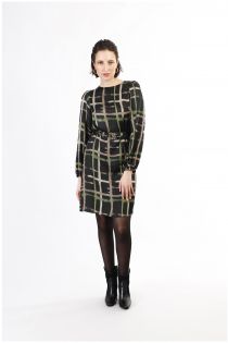 Straight-line dress in printed viscose. soft long sleeves with buttons on the cuffs. the waistline is outlined thanks to the fabric sash with cafènoir logo buckle. invisible zip closure on the back.
