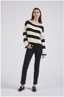 Striped crew-neck sweater with long sleeves. comfortable fit made with viscose yarn.