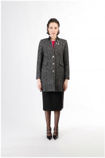 Straight single-breasted coat in herringbone fabric. button closure. elegant and functional garment.