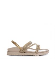 Asymmetric sandals with five rhinestone-clad straps leather insole on comfortable footbed.