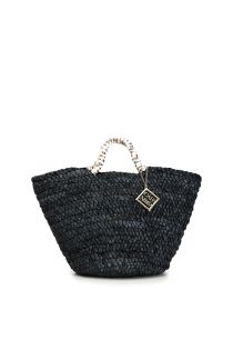 straw basket shopping bag with square cafènoir pendant black