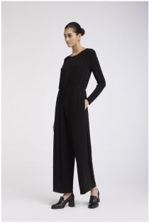 Jumpsuit with fitted waist wide trousers and long sleeves made with crepe-effect jersey.