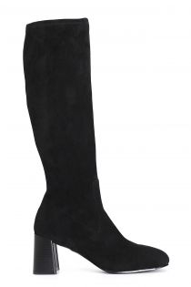 Microfibre boot with elasticated upper. zipper on the inside. comfortable shoe with an innovative and refined style as well as very feminine. the toe and 65mm heel are squared. the insole is in leather.