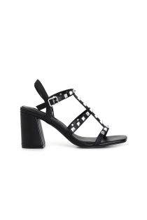 Leather sandals with silver studs. adjustable strap. leather insole. 75 mm-high heel.