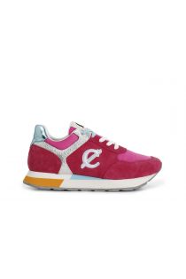 suede and fabric sneakers with glitter appliqués hot pink