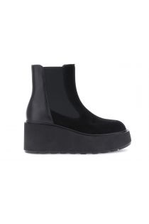 Women's suede ankle boots with smooth leather inserts. Elasticated design, 7.5 cm heel and 4 cm platform. Comfort and style for contemporary urban looks.