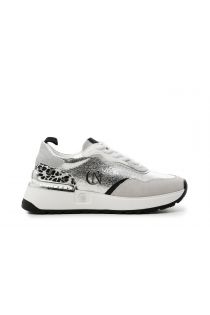 Lace-up sneakers with suede upper, metal crack, animal print inserts and metal CafèNoir logo on the side. New running sole with metal-effect spoiler