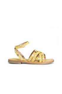 Low interwoven leather and raffia sandals with an ankle strap. decorative studs illuminate the model.