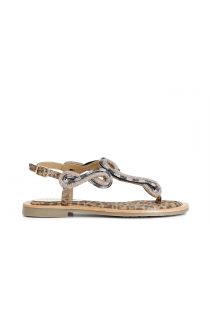 suede and spotted print flip-flop sandals with rhinestone accessory multi bronze