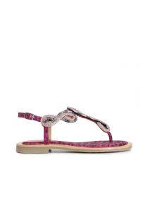 suede and spotted print flip-flop sandals with rhinestone accessory multi fuchsia