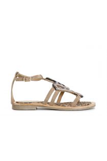 suede and spotted print sandals with rhinestone accessory multi bronze