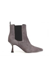 Women's slender suede ankle boot with a high 80 mm heel. side stretch panels make them easier to put on. the insole is leather.