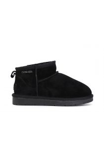 Suede ankle boots with faux fur lining. Metal logo.