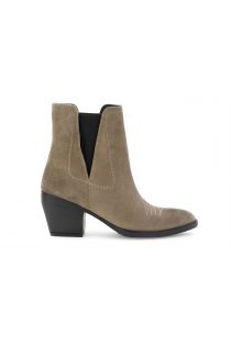 Suede ankle boots with elastic sides and Western-inspired stitching. Leather lining for maximum comfort. 7 cm block heel, perfect for urban chic looks.