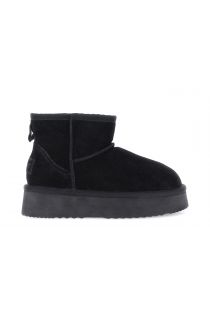 Suede ankle boots with faux fur lining, perfect for winter. Metal café logo on the back. 4 cm platform sole. Comfort, warmth, and style in a casual-chic boot.