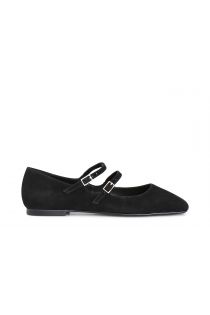 suede ballet flats with double lace and buckle black