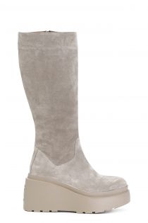 Suede boots with wedge. Sole with logo-embossed custom wedge