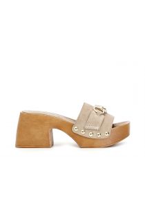 Suede slide clogs available in 7 colours with metal bit, square toe and medium heel.