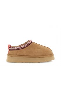 suede clogs with fur camel