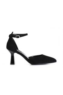Suede court shoes with reinforced heel and strap with buckle at the ankle. leather insole. 75 mm-high heel.