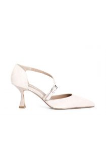 Suede décolleté with asymmetrical crossover. the insole is in leather. slim-fit shoe. the heel is 7 cm.