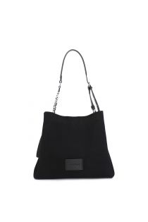 suede effect shoulder bag with large lettering on the shoulder strap black