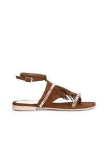Suede thong sandals with fringes and rhinestone chain. lining and insole are in leather. the heel is 2 cm high. comfortable to wear and easy to match.