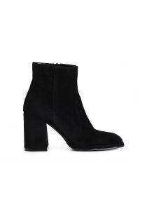 Women's suede ankle boot. zip on the inside of the upper makes it super easy to put on. 85mm squared heel. leather insole.